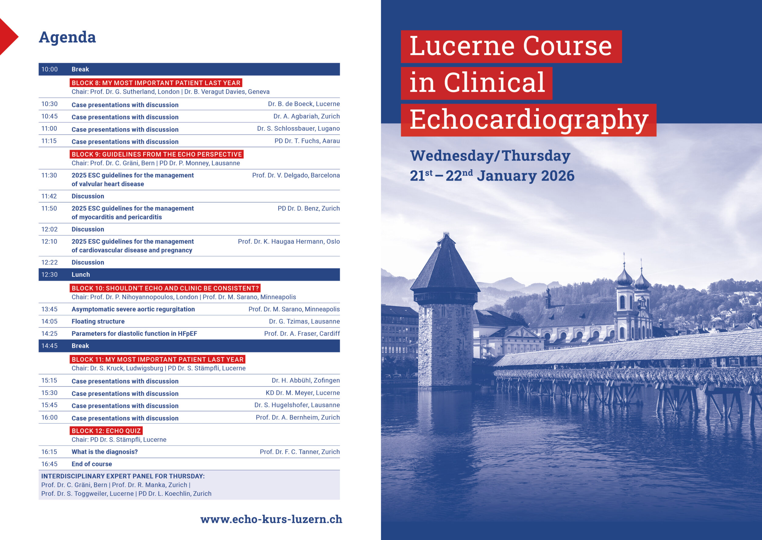 The Lucerne Course in Clinical Echocardiography is organized by the Swiss Society of Cardiology (SGK/SSC). www.swisscardio.ch